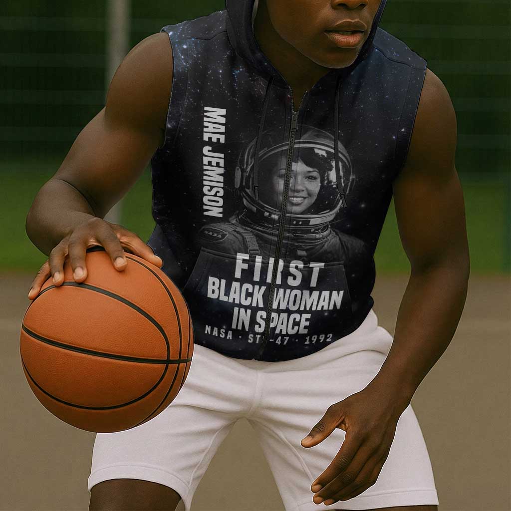Mae Jemison Sleeveless Zip Hoodie with NASA Spacesuit Portrait, First Black Woman
