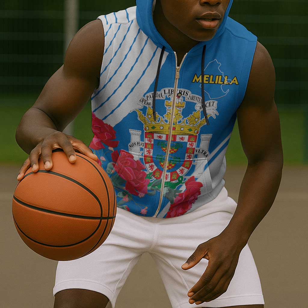 Melilla Spain Sleeveless Zip Hoodie Coat Of Arms With Map