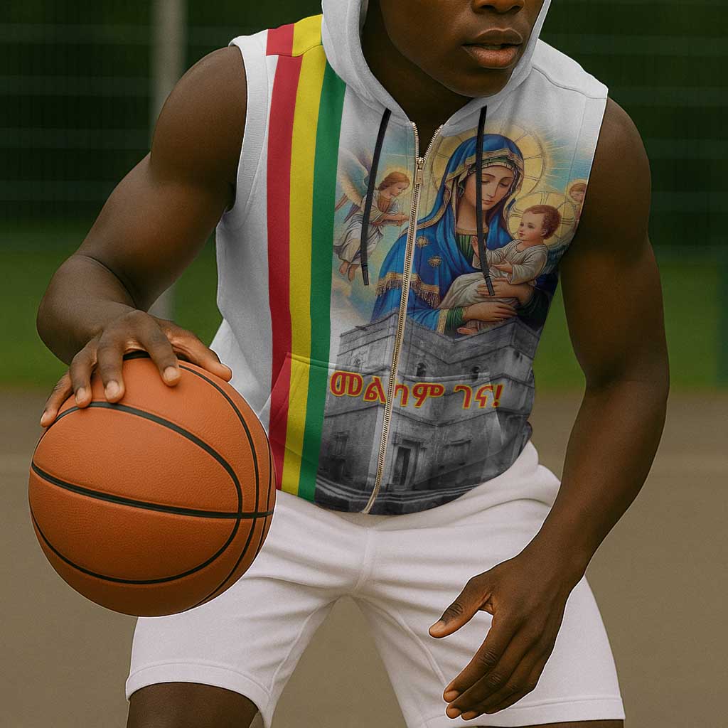 Melkam Gena Ethiopia Sleeveless Zip Hoodie Saint Mary Lalibela Churches