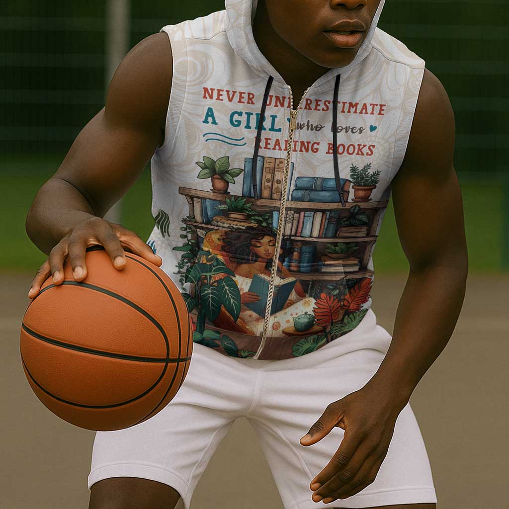Never Underestimate A Girl Who Loves Reading Books Sleeveless Zip Hoodie African Book Lovers