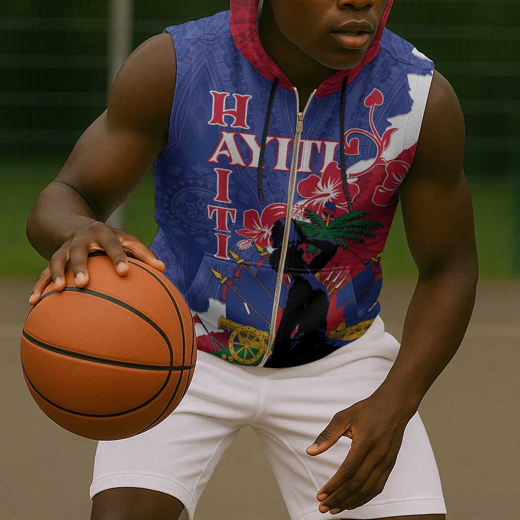 Personalised Afro Haiti Le Marron Inconnu Sleeveless Zip Hoodie Dashiki Mix Polynesian Pattern
