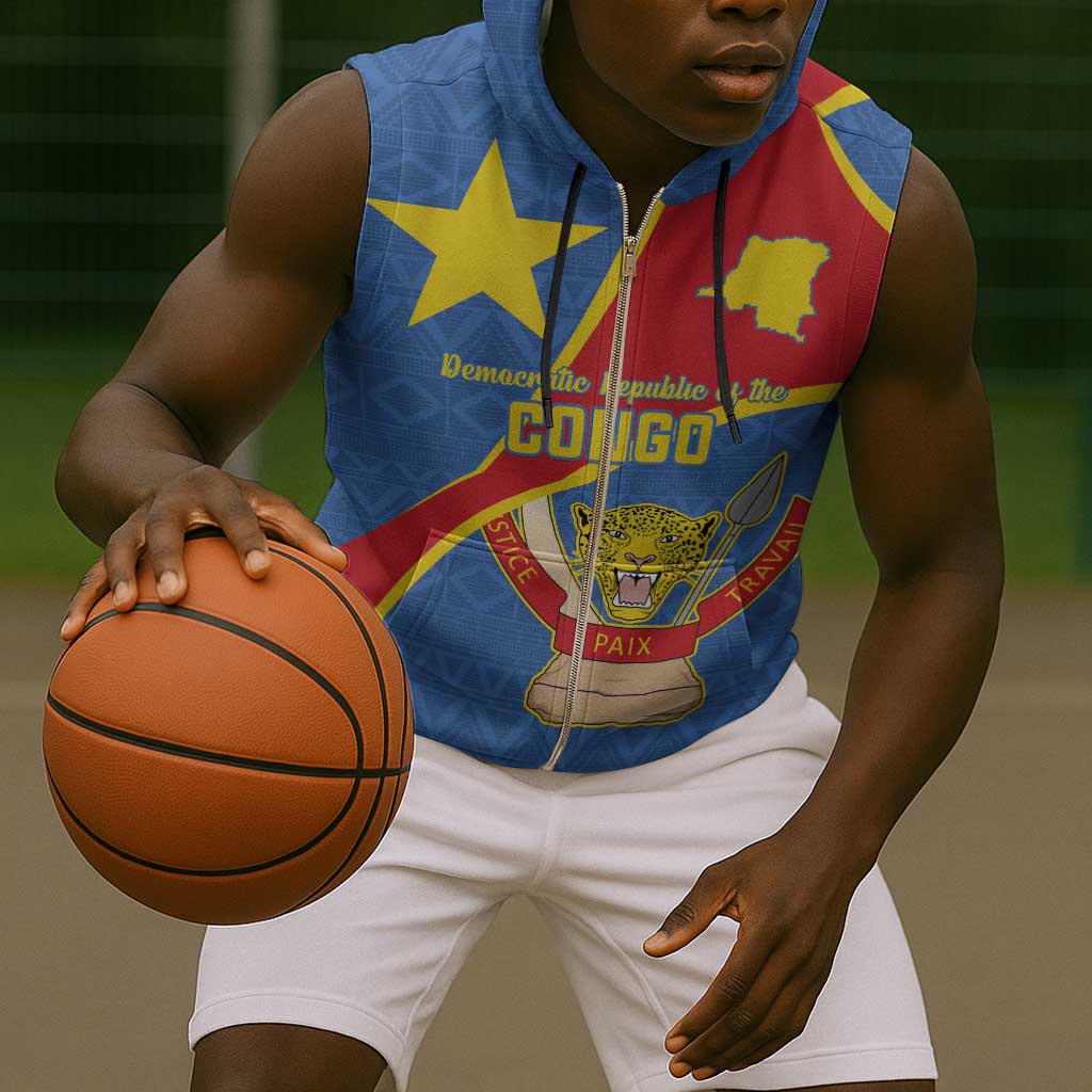 Personalised DR Congo Sleeveless Zip Hoodie Coat Of Arms With Map