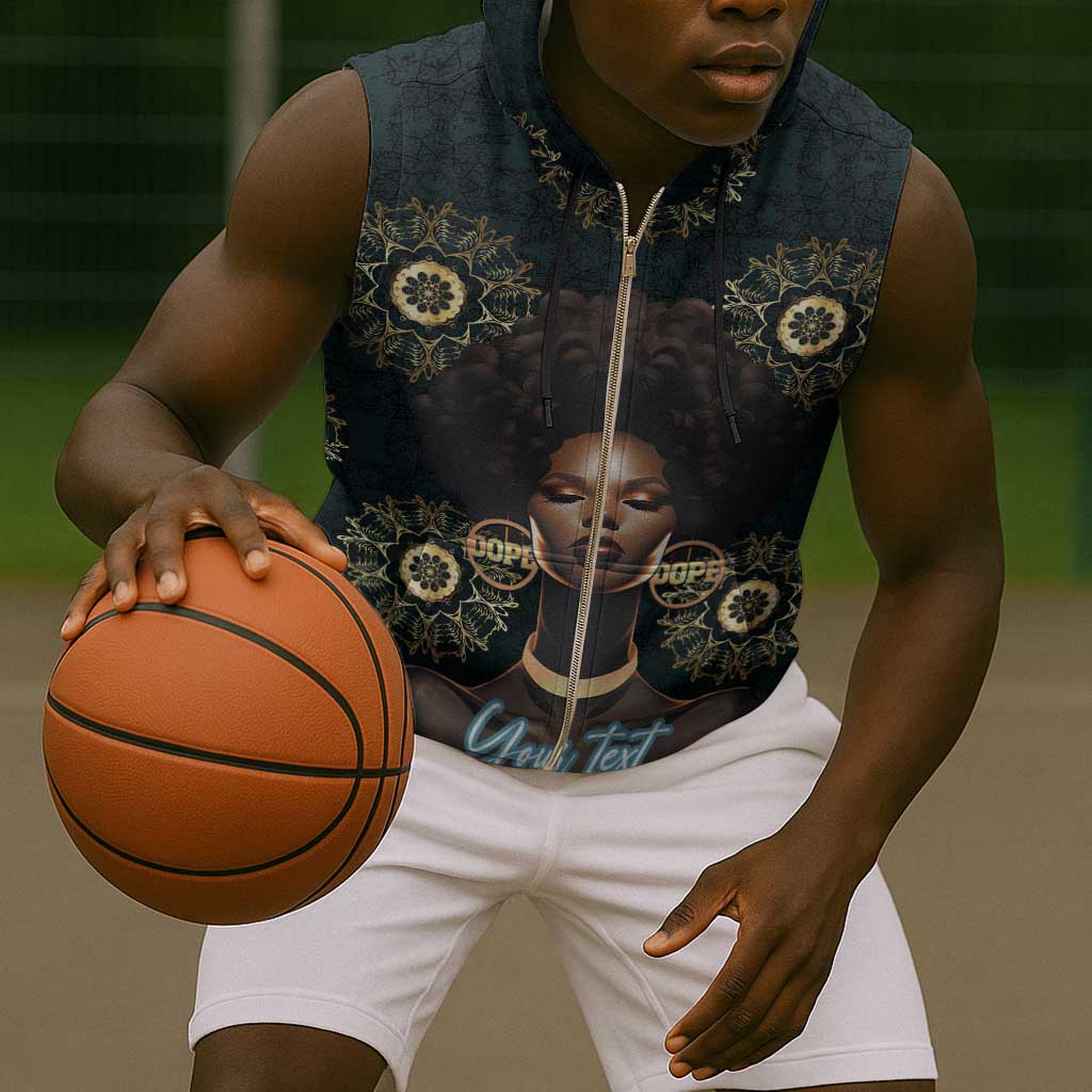 Personalized Afro Women Sleeveless Zip Hoodie Powerful African Pattern DT03