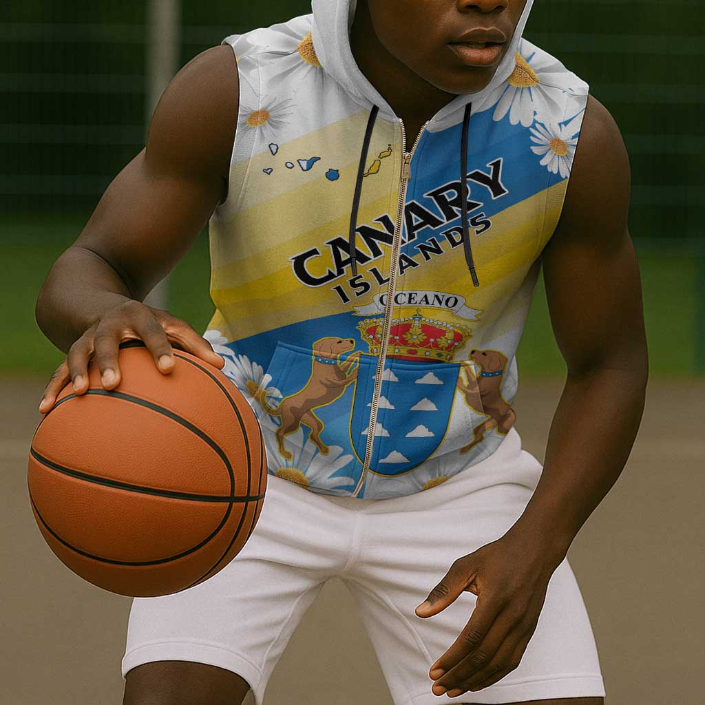 Personalized Canary Islands Sleeveless Zip Hoodie Coat Of Arms Argyranthemum Frutescens