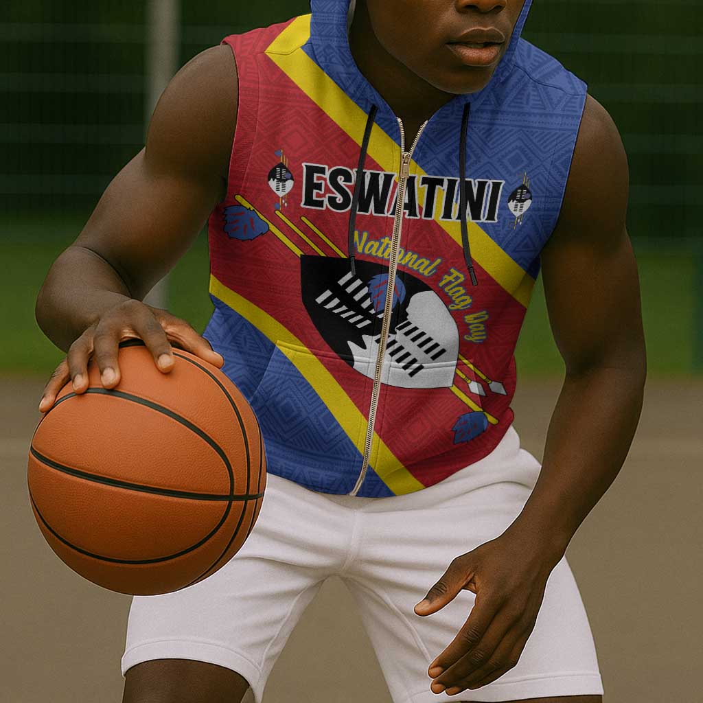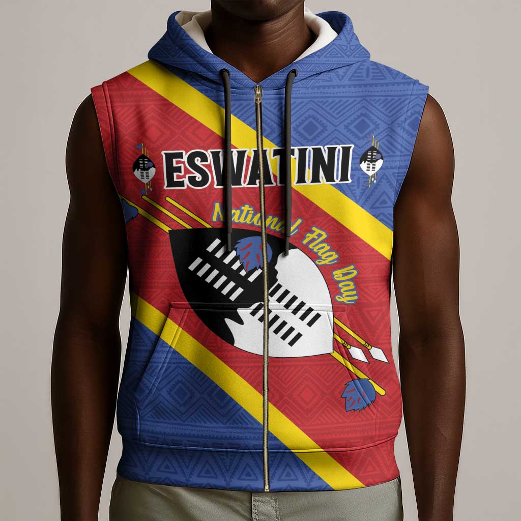 Personalized Happy Swaziland National Flag Day Sleeveless Zip Hoodie Nguni Shield Flag Style - African Pattern