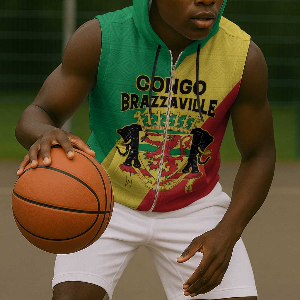 Personalized Republique du Congo Sleeveless Zip Hoodie Coat Of Arms African Pattern