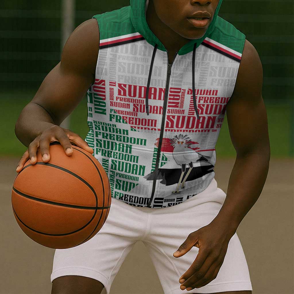 Personalized Sudan Sleeveless Zip Hoodie Secretary Bird With Typography Patterns DT05