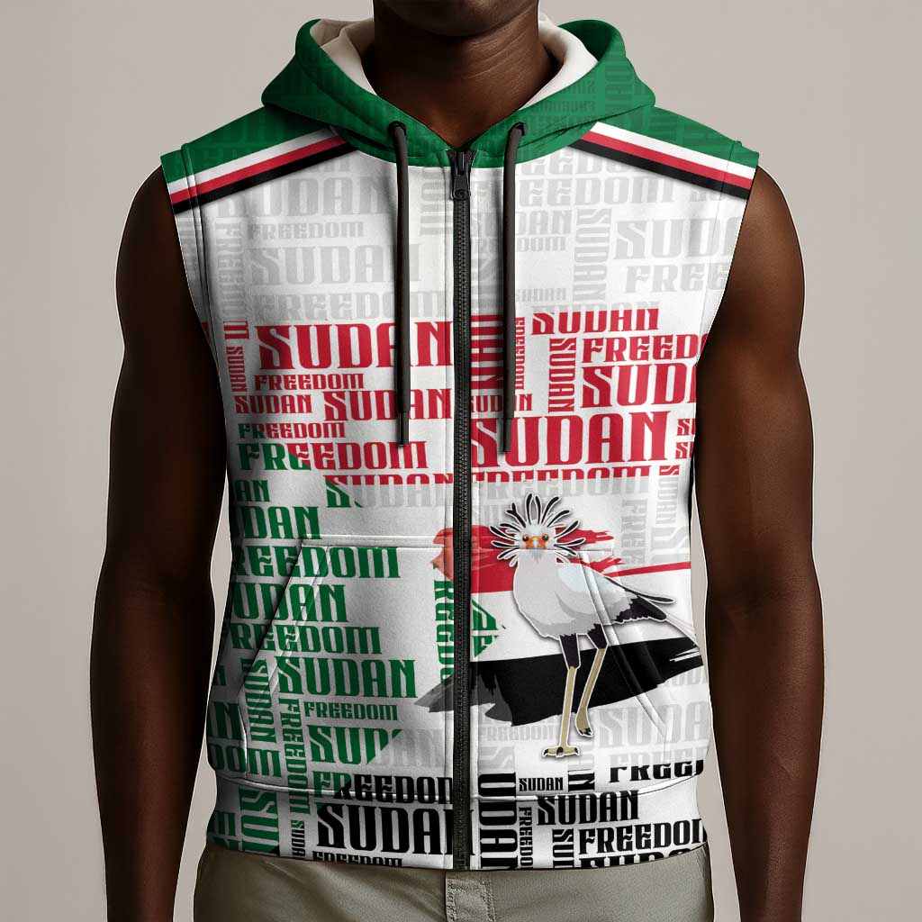 Personalized Sudan Sleeveless Zip Hoodie Secretary Bird With Typography Patterns