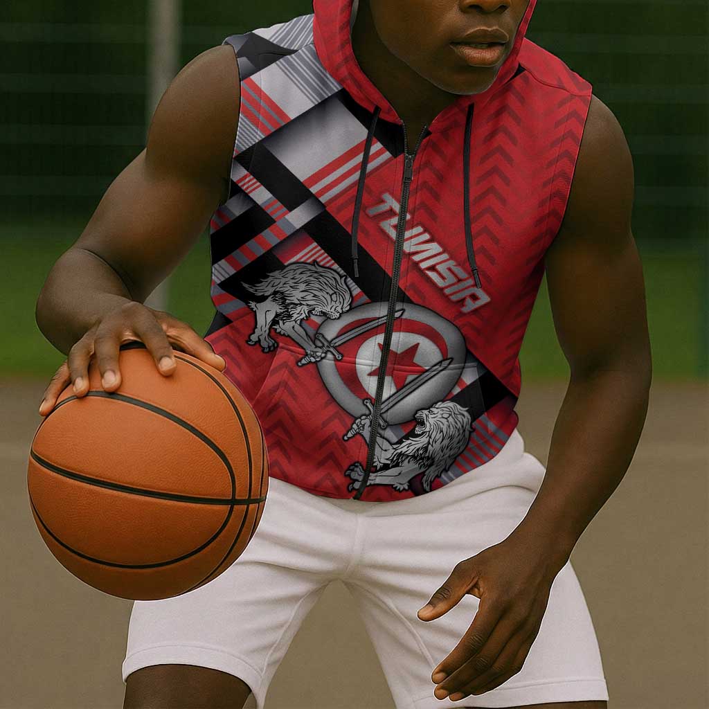 Personalized Tunisia Sleeveless Zip Hoodie Silver Lions Sports Patterns