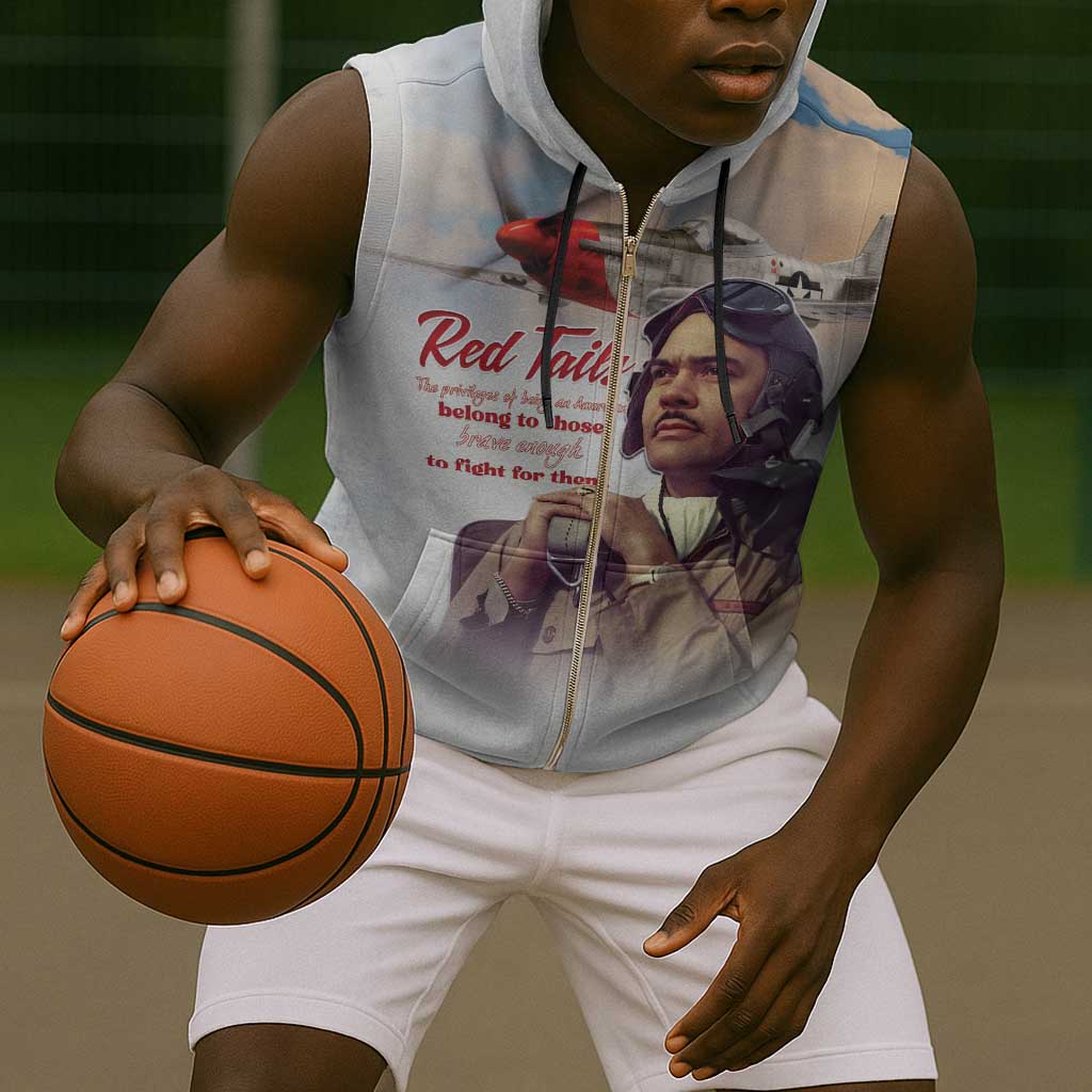 Sky Leaders of WWII Sleeveless Zip Hoodie Red Tails Tuskegee Tribute