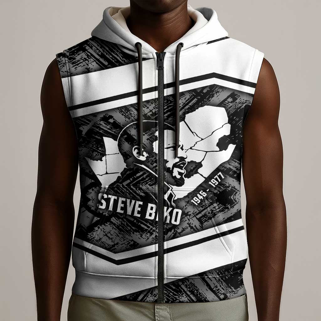 Steve Biko Sleeveless Zip Hoodie with Monochrome Portrait, Ideas Do Not Die Quote