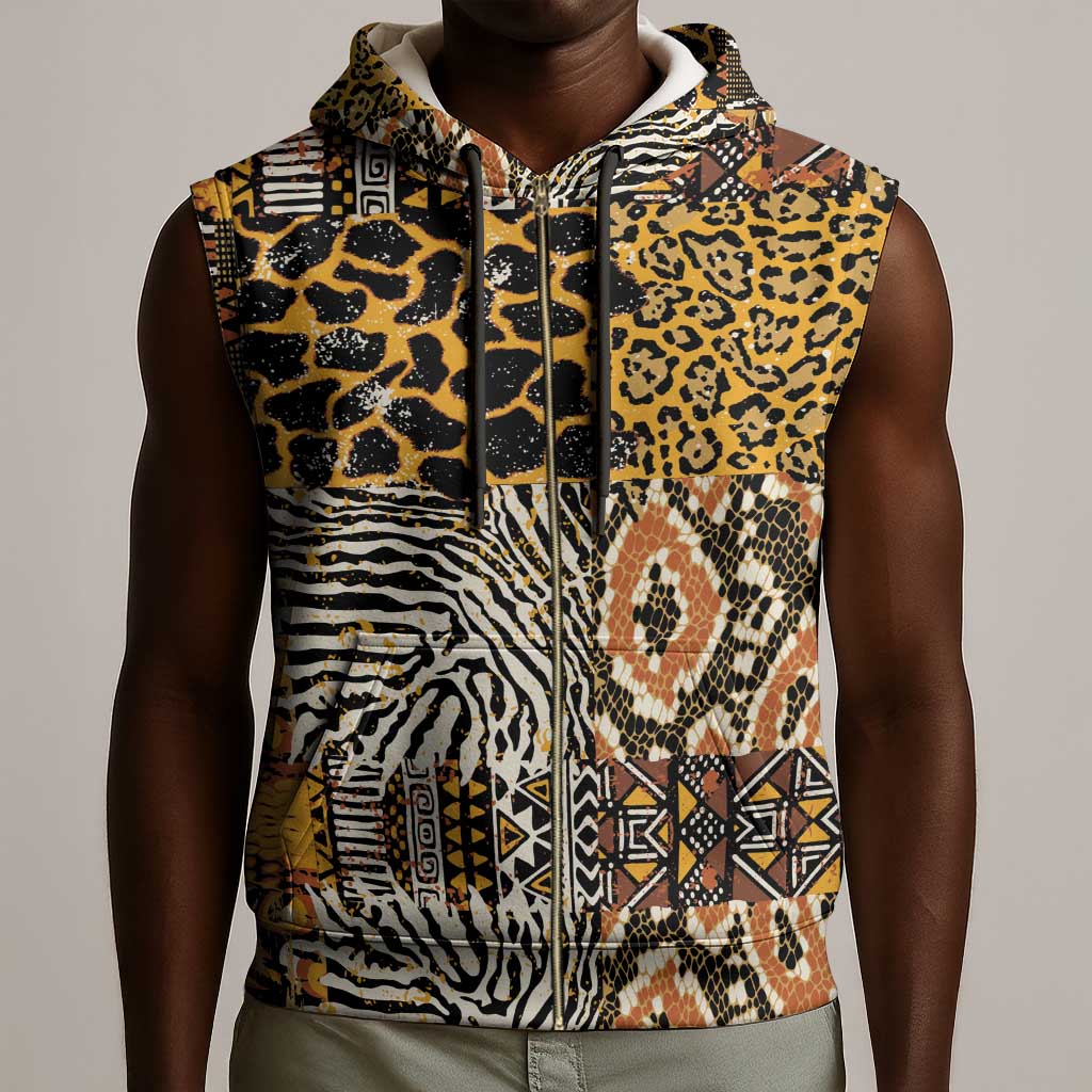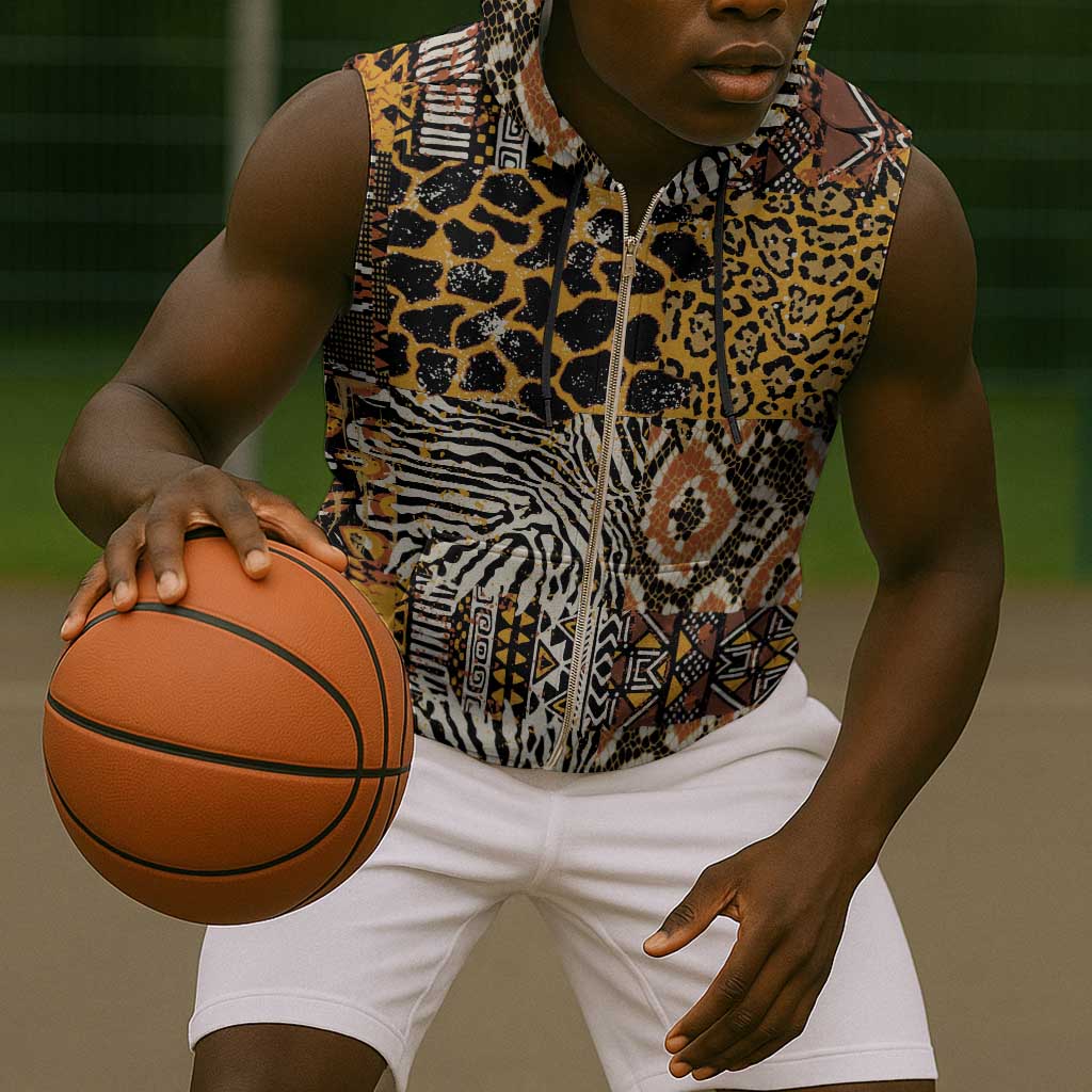 Wild Animal Skins Sleeveless Zip Hoodie African Tribal Pattern