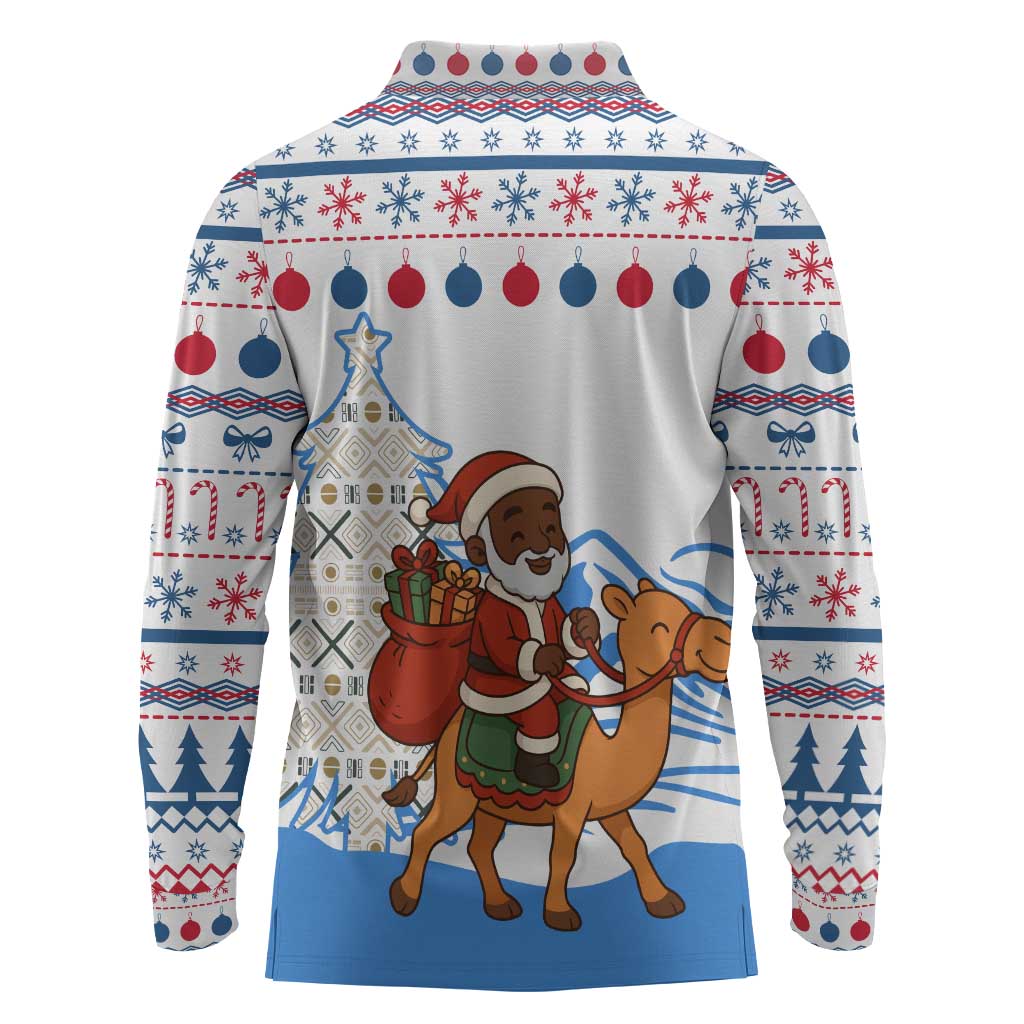 Somalia Christmas Long Sleeve Polo Shirt Santa on Camel Christmas Tree Ornaments Candy Canes and Snowflake