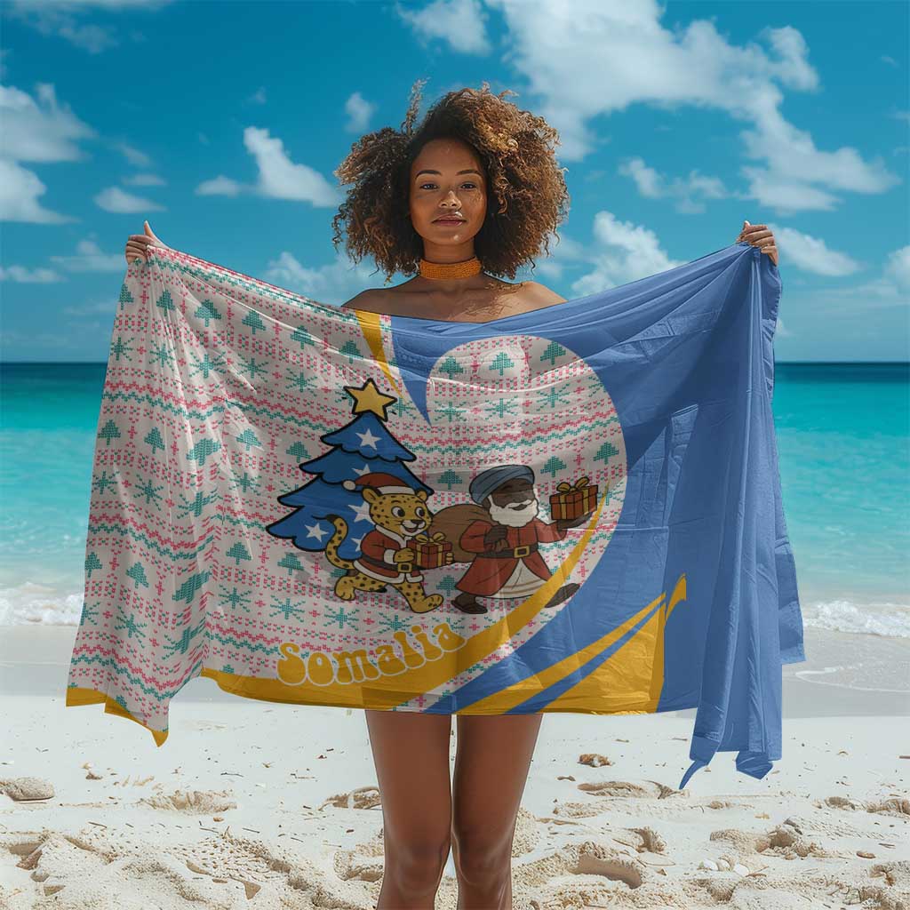Somalia Christmas Sarong Santa Cheetah Christmas Tree Village Scene and Festive Snowflake