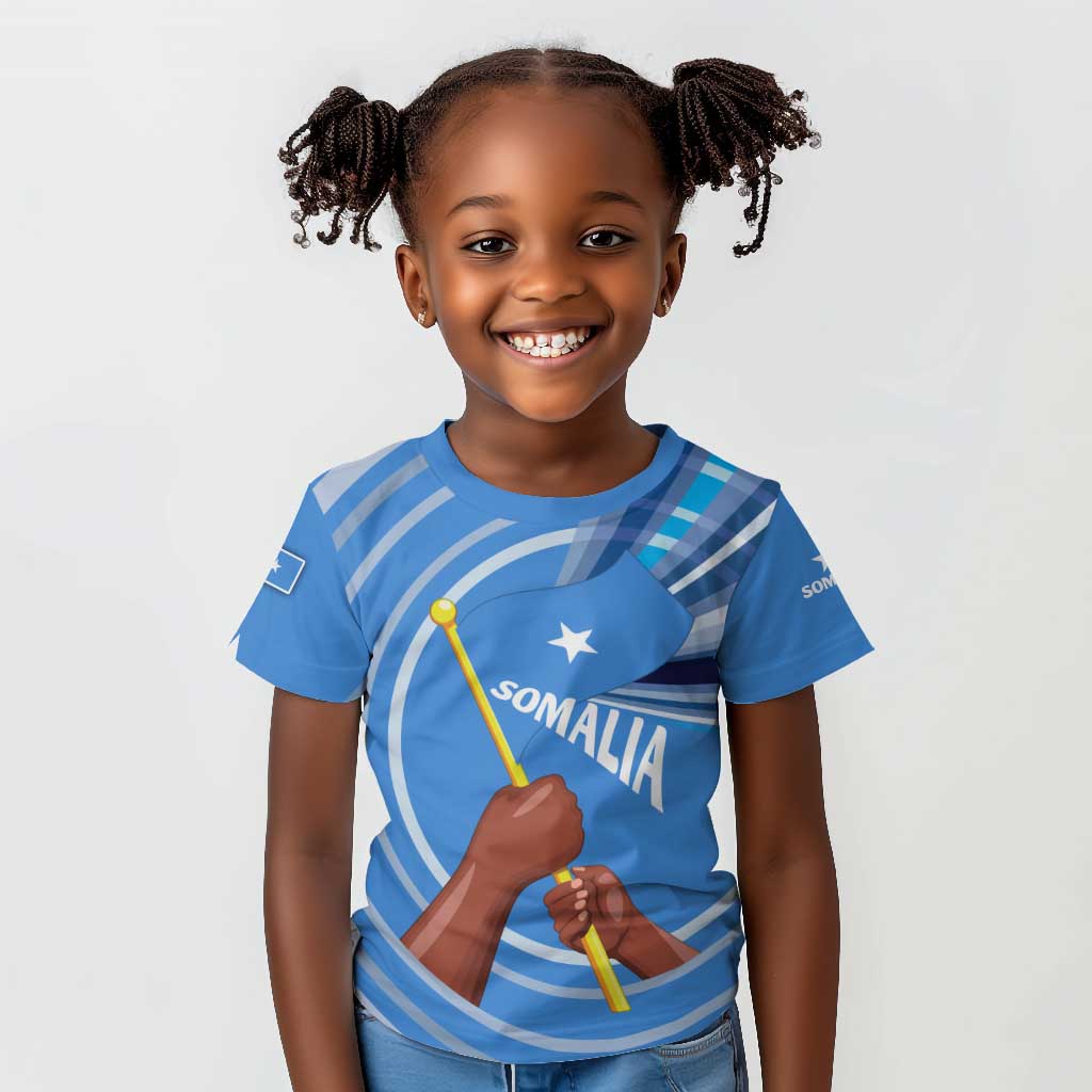Somalia Kid Polo Shirt with Raised Fist Flag Blue Unity Wave Spirit