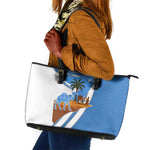 Somalia Leather Tote Bag with Camel Desert Map Palm Tree Heritage Spirit