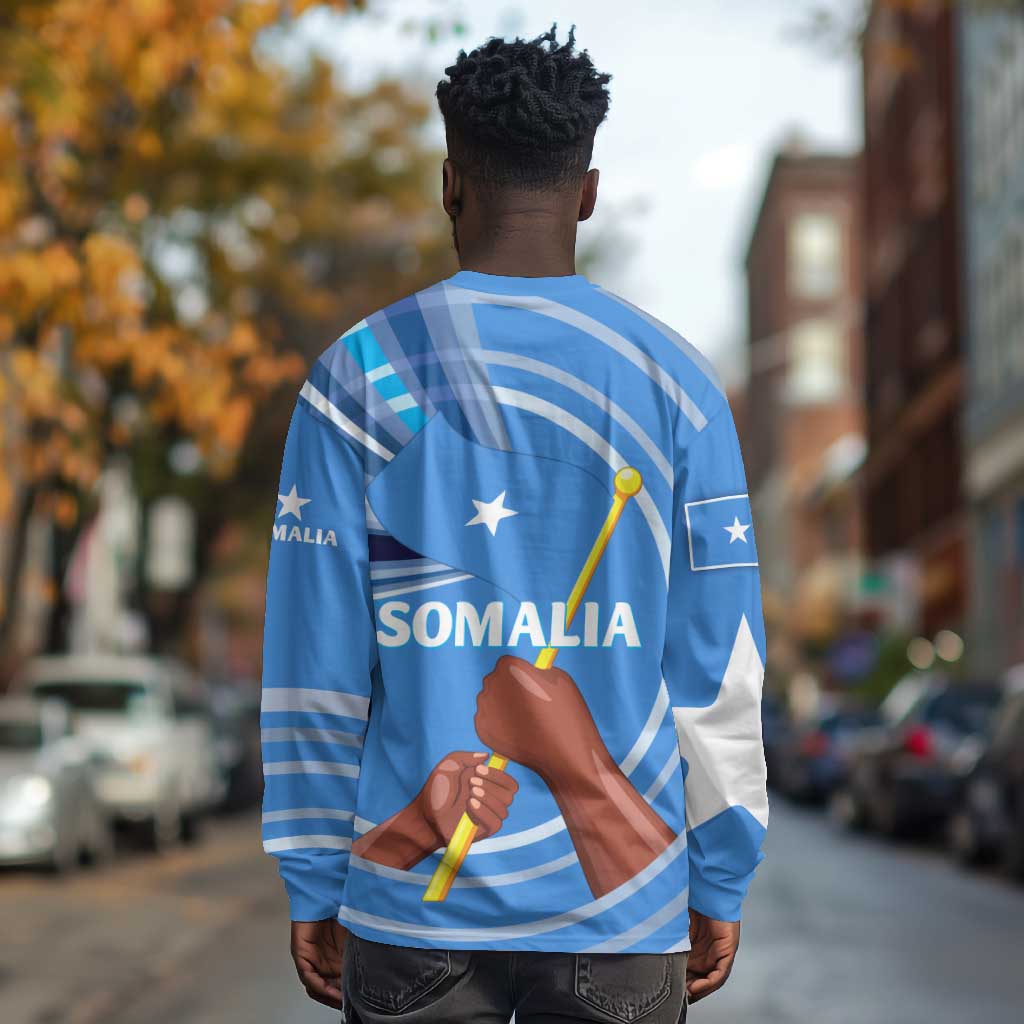 Somalia Long Sleeve Shirt with Raised Fist Flag Blue Unity Wave Spirit