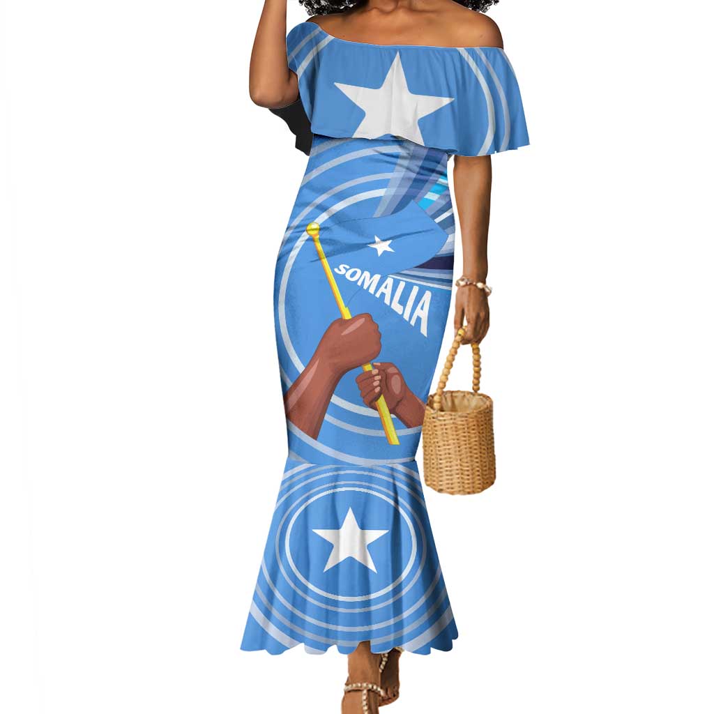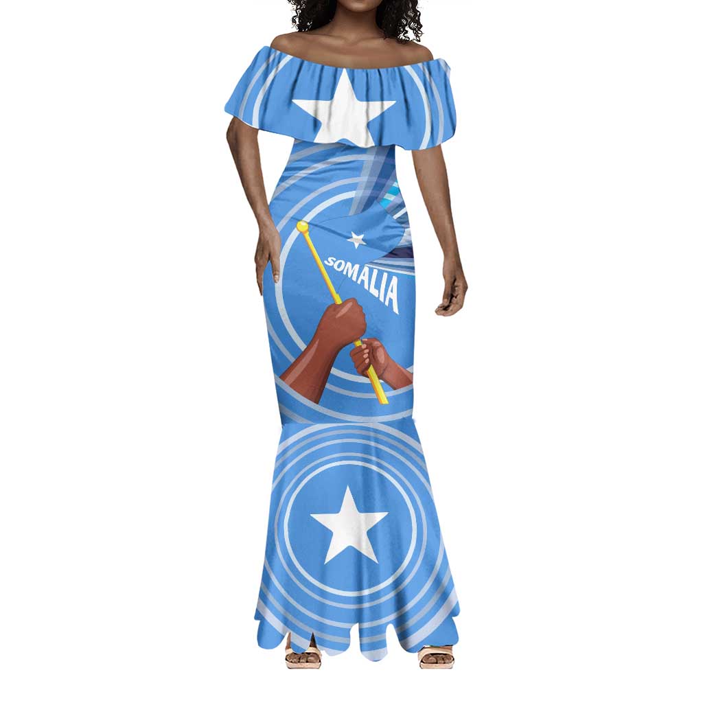 Somalia Mermaid Dress with Raised Fist Flag Blue Unity Wave Spirit