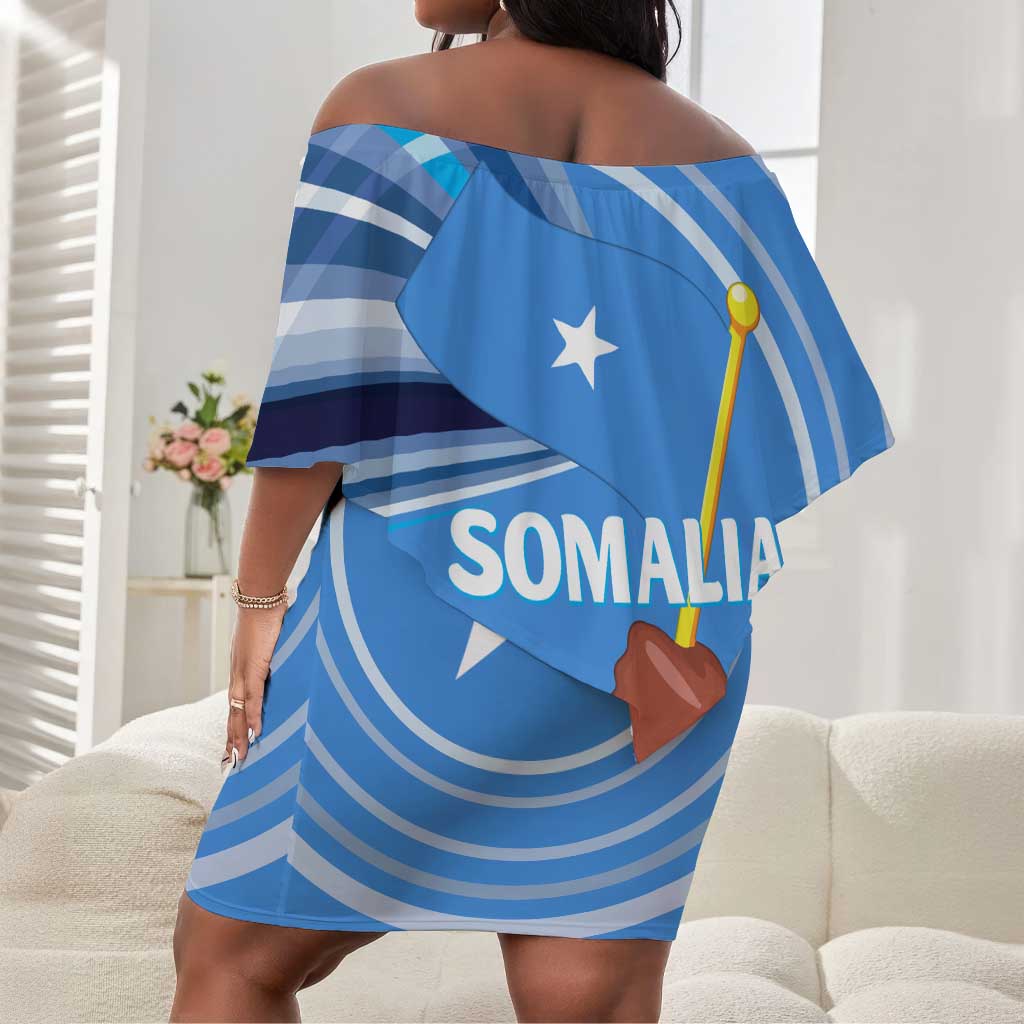 Somalia Off Shoulder Short Dress with Raised Fist Flag Blue Unity Wave Spirit