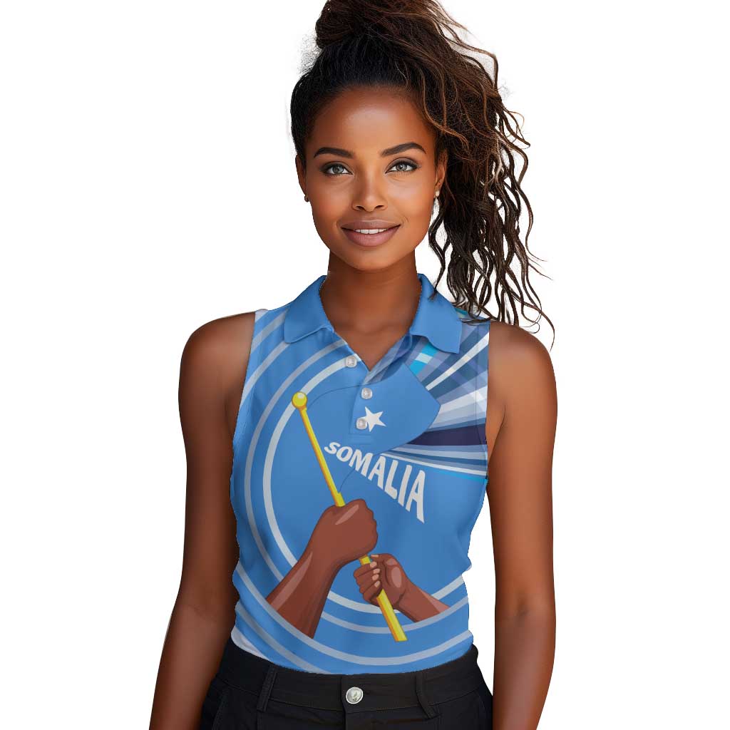 Somalia Women Racerback Tank with Raised Fist Flag Blue Unity Wave Spirit