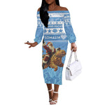 Personalized Afro Somalia Christmas Off The Shoulder Long Sleeve Dress Black Santa Riding Leopard - African Pattern LT15