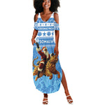 Personalized Afro Somalia Christmas Summer Maxi Dress Black Santa Riding Leopard - African Pattern