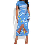 Somalia Short Sleeve Bodycon Dress with Raised Fist Flag Blue Unity Wave Spirit