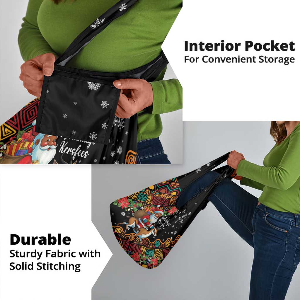 South Africa Gelukkige Kersfees Grocery Bag Black Santa Claus Riding Springbok