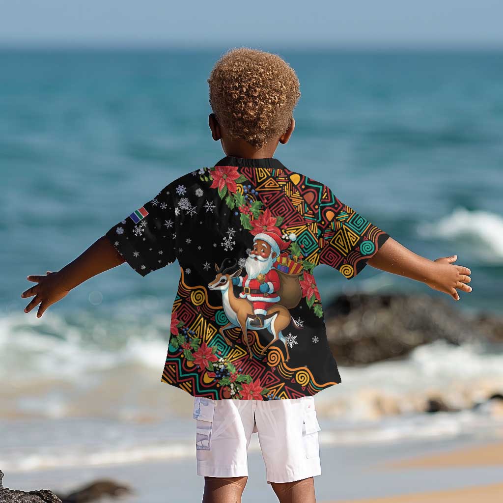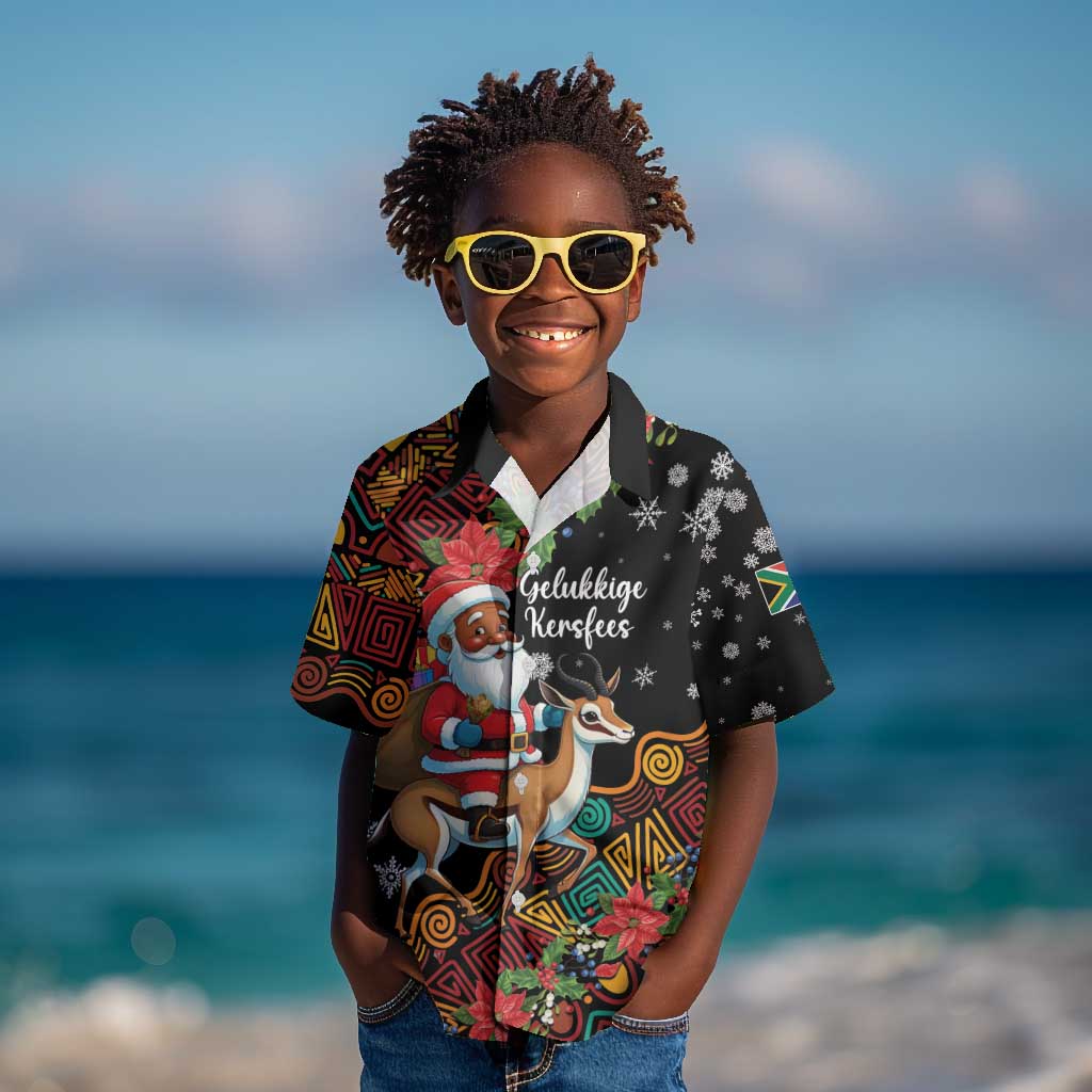 South Africa Gelukkige Kersfees Kid Hawaiian Shirt Black Santa Claus Riding Springbok