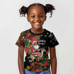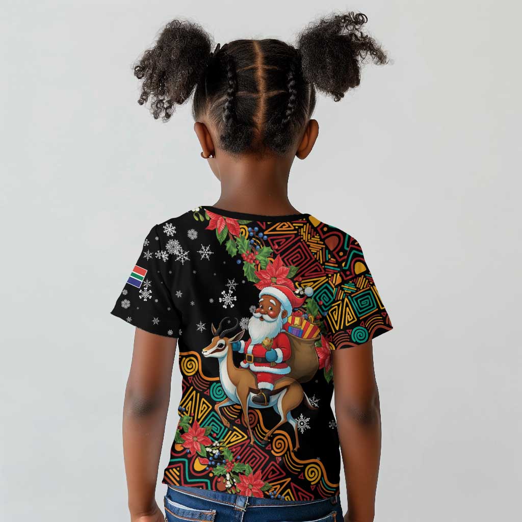 South Africa Gelukkige Kersfees Kid T shirt Black Santa Claus Riding Springbok LT01