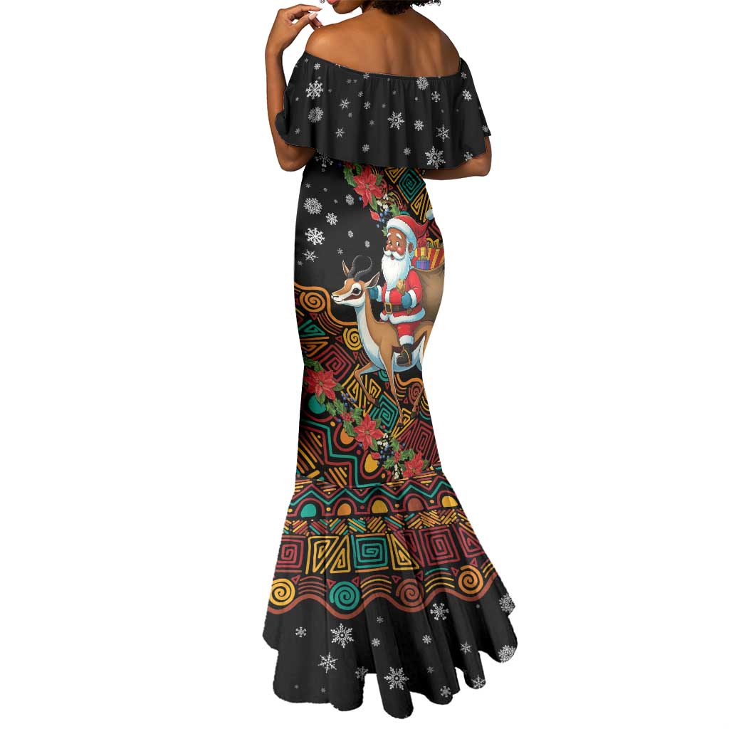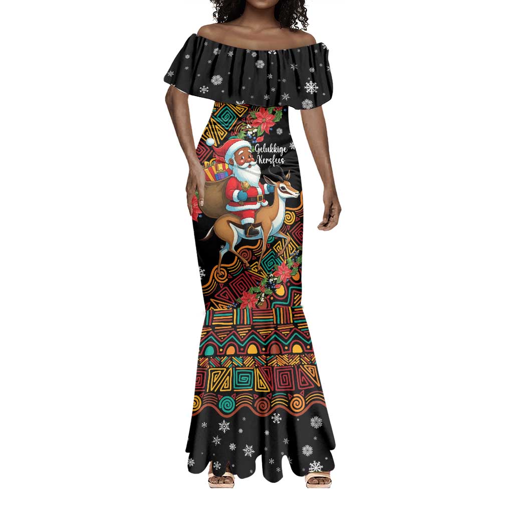 South Africa Gelukkige Kersfees Mermaid Dress Black Santa Claus Riding Springbok