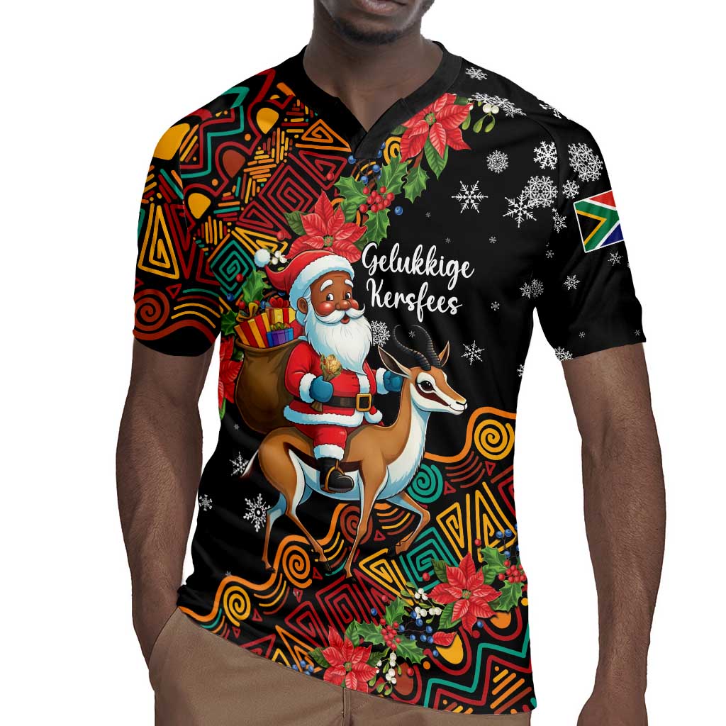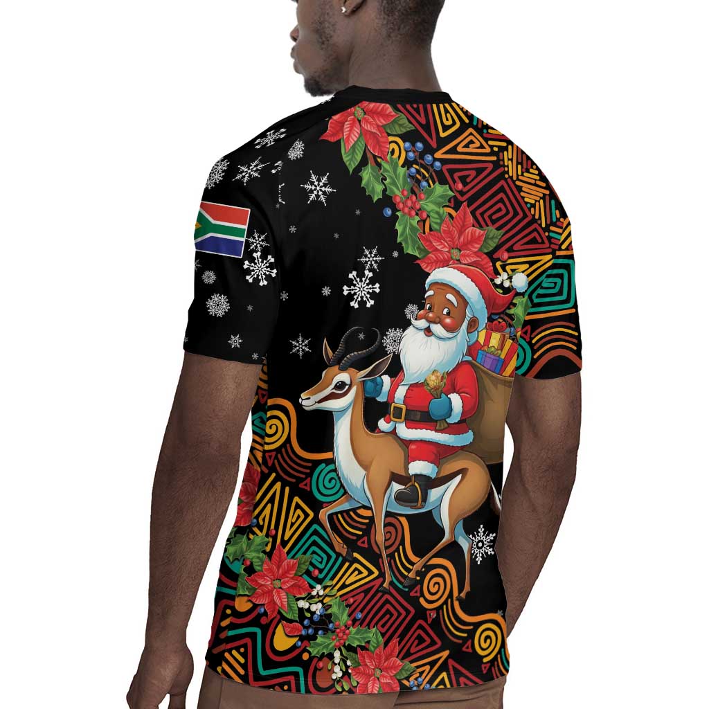 South Africa Gelukkige Kersfees Rugby Jersey Black Santa Claus Riding Springbok