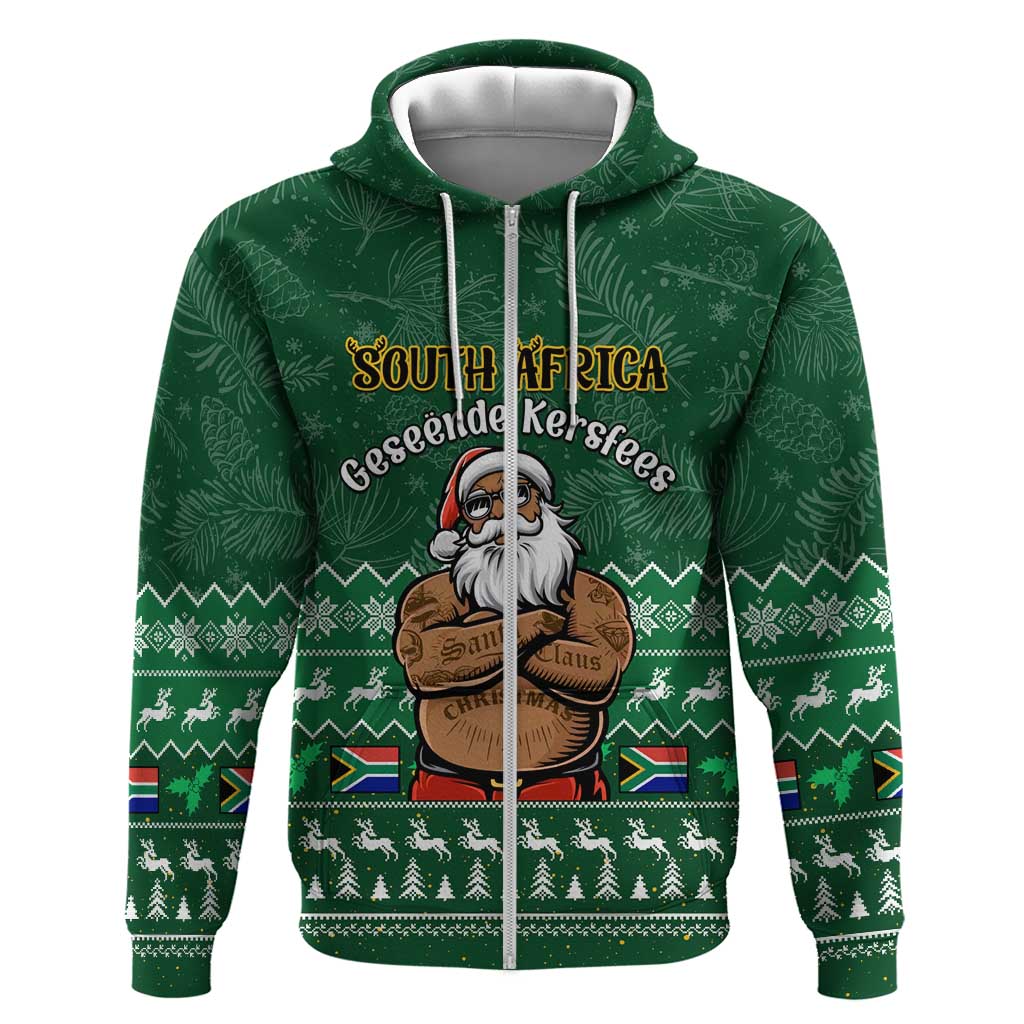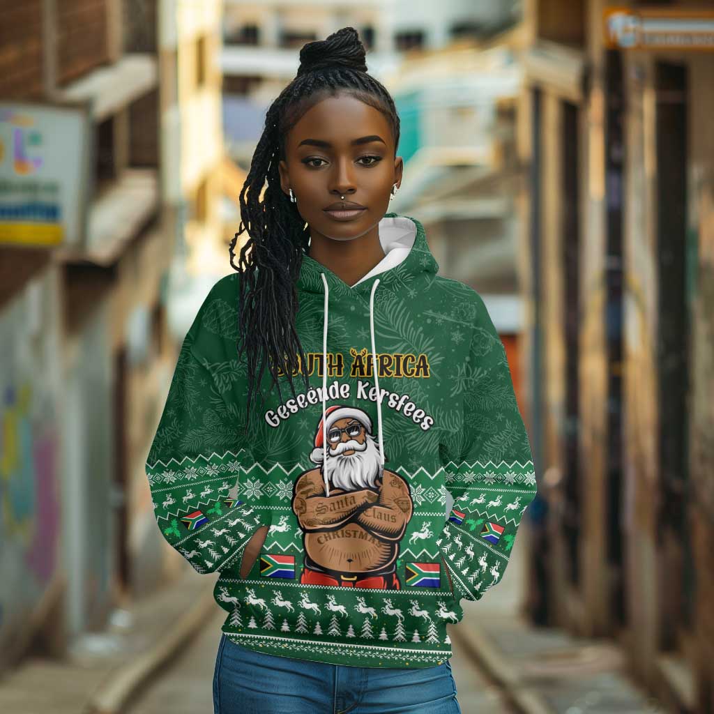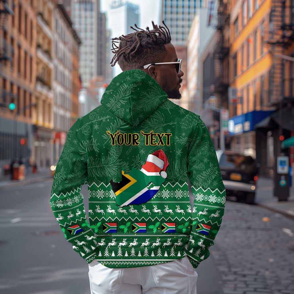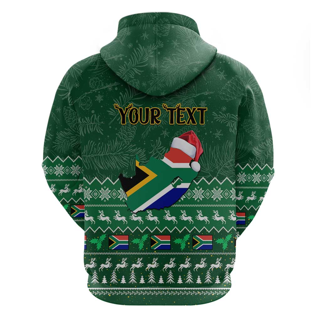 Personalised South Africa Christmas Hoodie Cool Santa Claus With South African Map