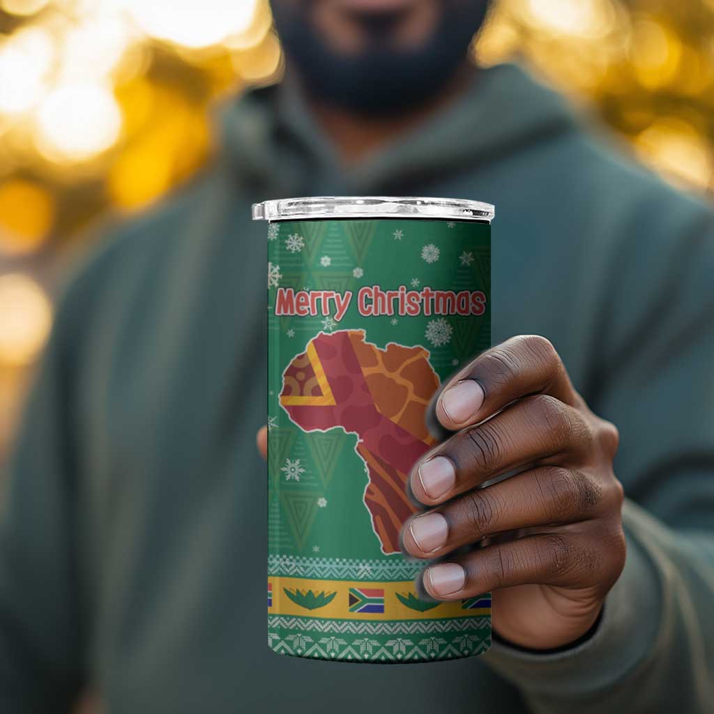 South Africa Christmas 4 in 1 Can Cooler Tumbler Santa Reindeer and Africa Map