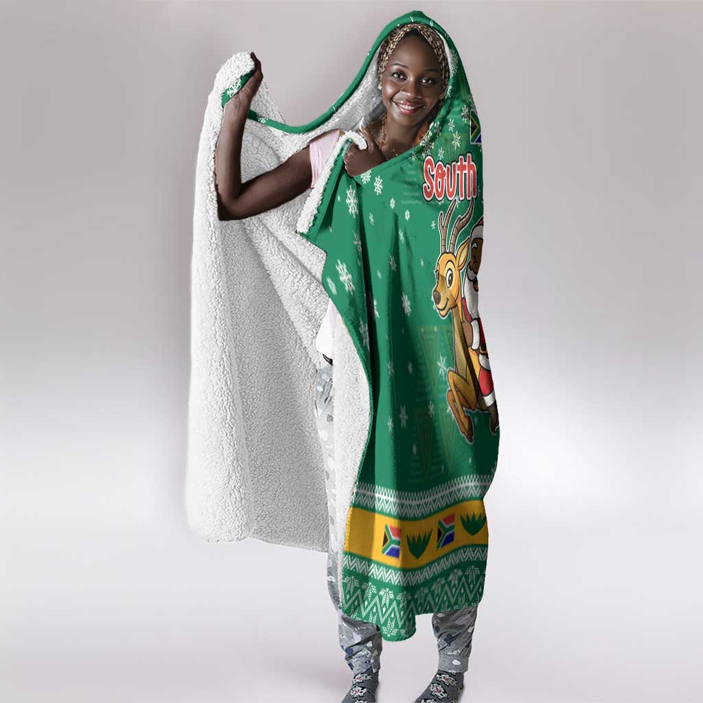 South Africa Christmas Hooded Blanket Santa Reindeer and Africa Map