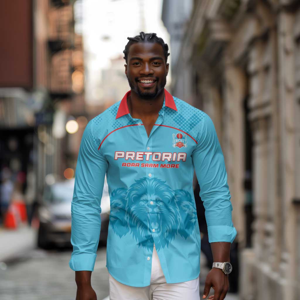 Custom Afro South Africa Cricket Long Sleeve Button Shirt Roar Saam More - This Is Pretoria