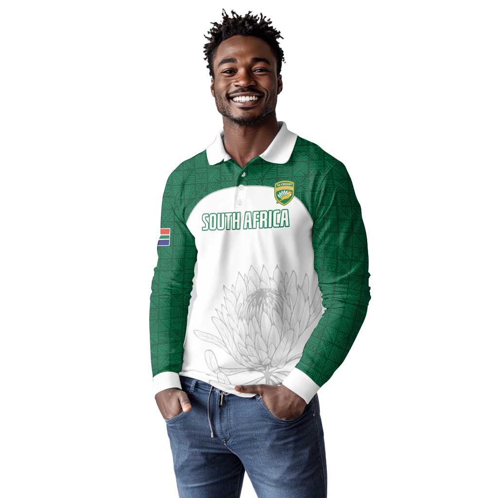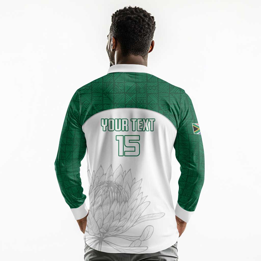 Custom Afro South Africa Cricket Long Sleeve Polo Shirt Go Proteas - African Pattern