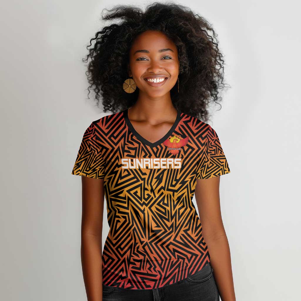 Custom Afro South Africa Cricket Women V-Neck T-Shirt Eastern Cape - Go Sunrisers