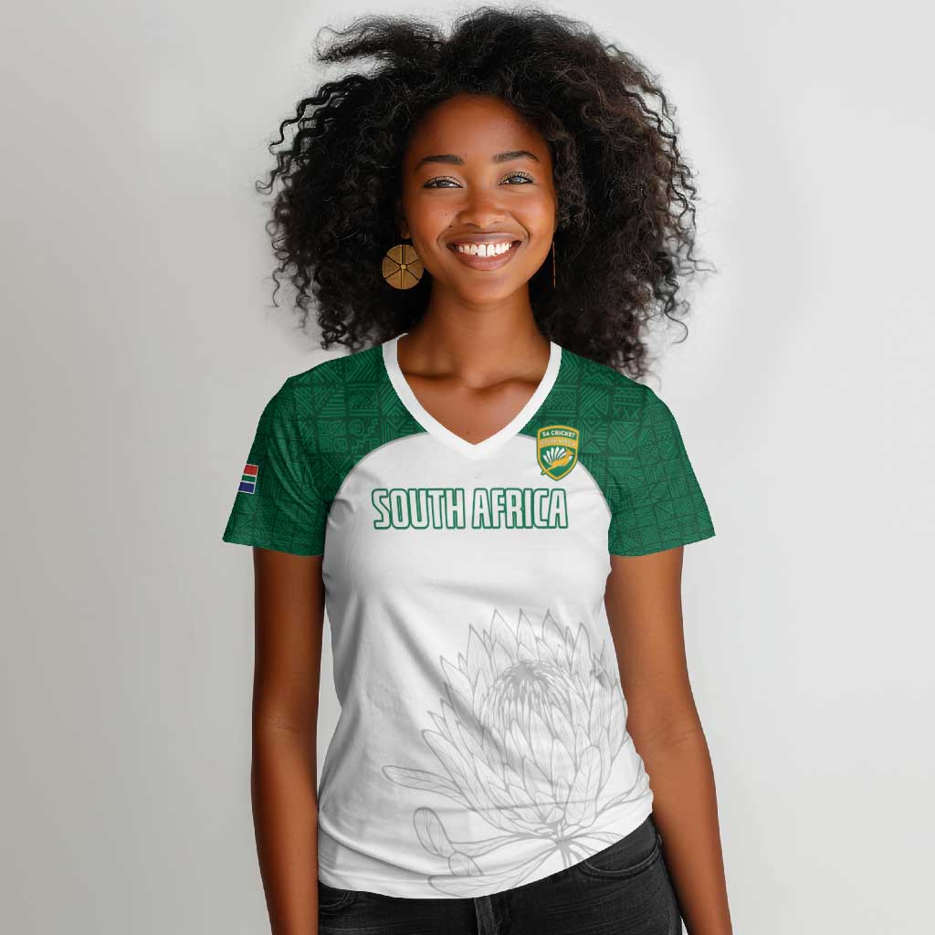 Custom Afro South Africa Cricket Women V-Neck T-Shirt Go Proteas - African Pattern
