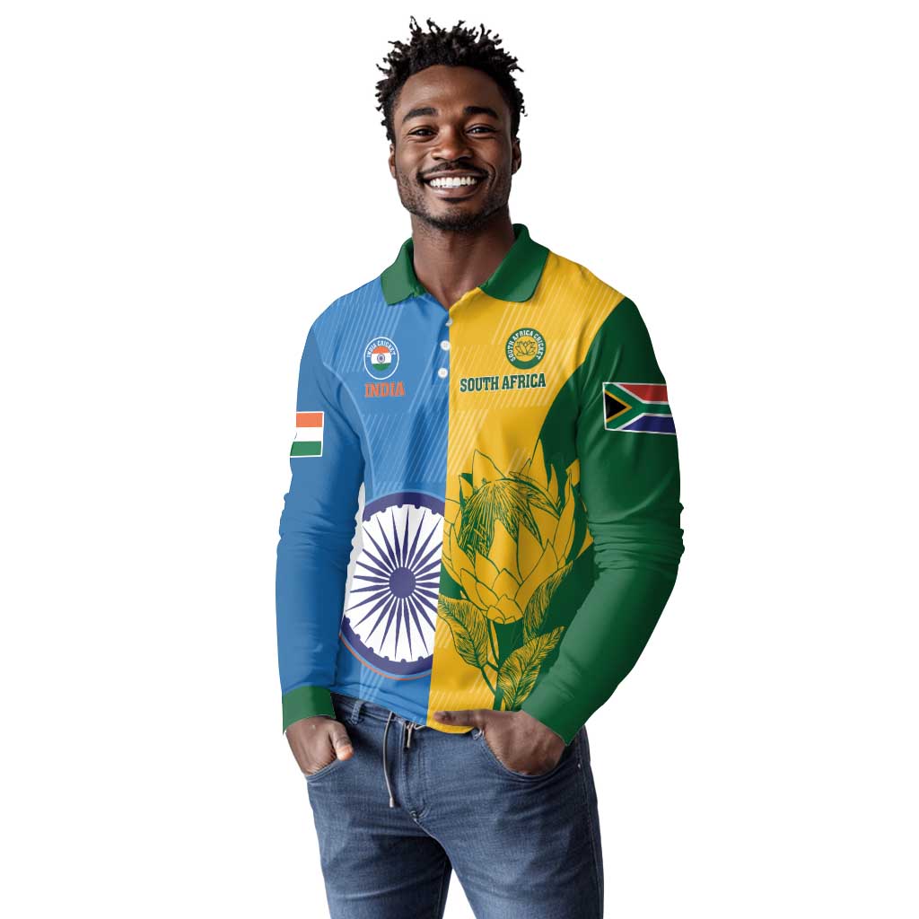 Custom India And South Africa Cricket Long Sleeve Polo Shirt 2024 Together Dynamic Version