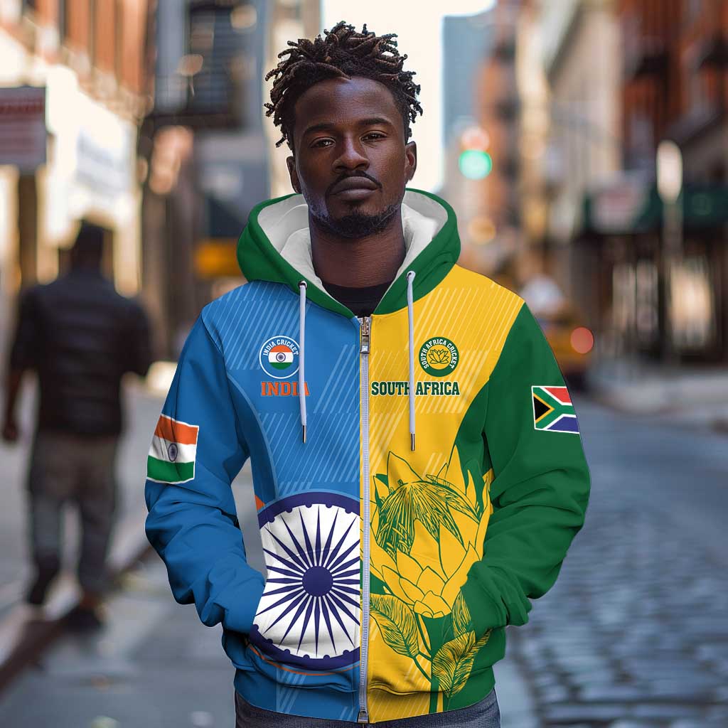 Custom India And South Africa Cricket Zip Hoodie 2024 Together Dynamic Version