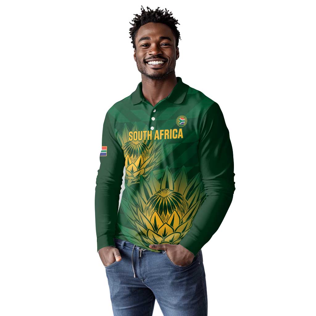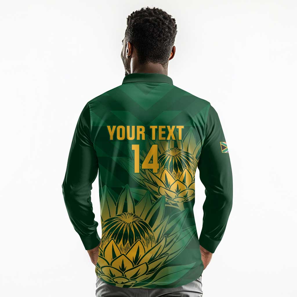 Custom South Africa Cricket Long Sleeve Polo Shirt Go Champions Proteas