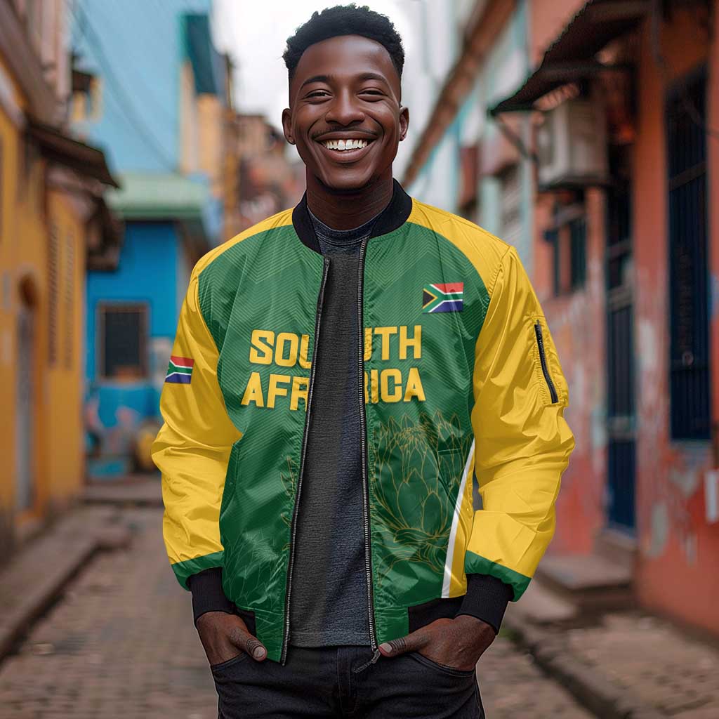 Custom South Africa Cricket Sleeve Zip Bomber Jacket Go Champions Protea Pattern