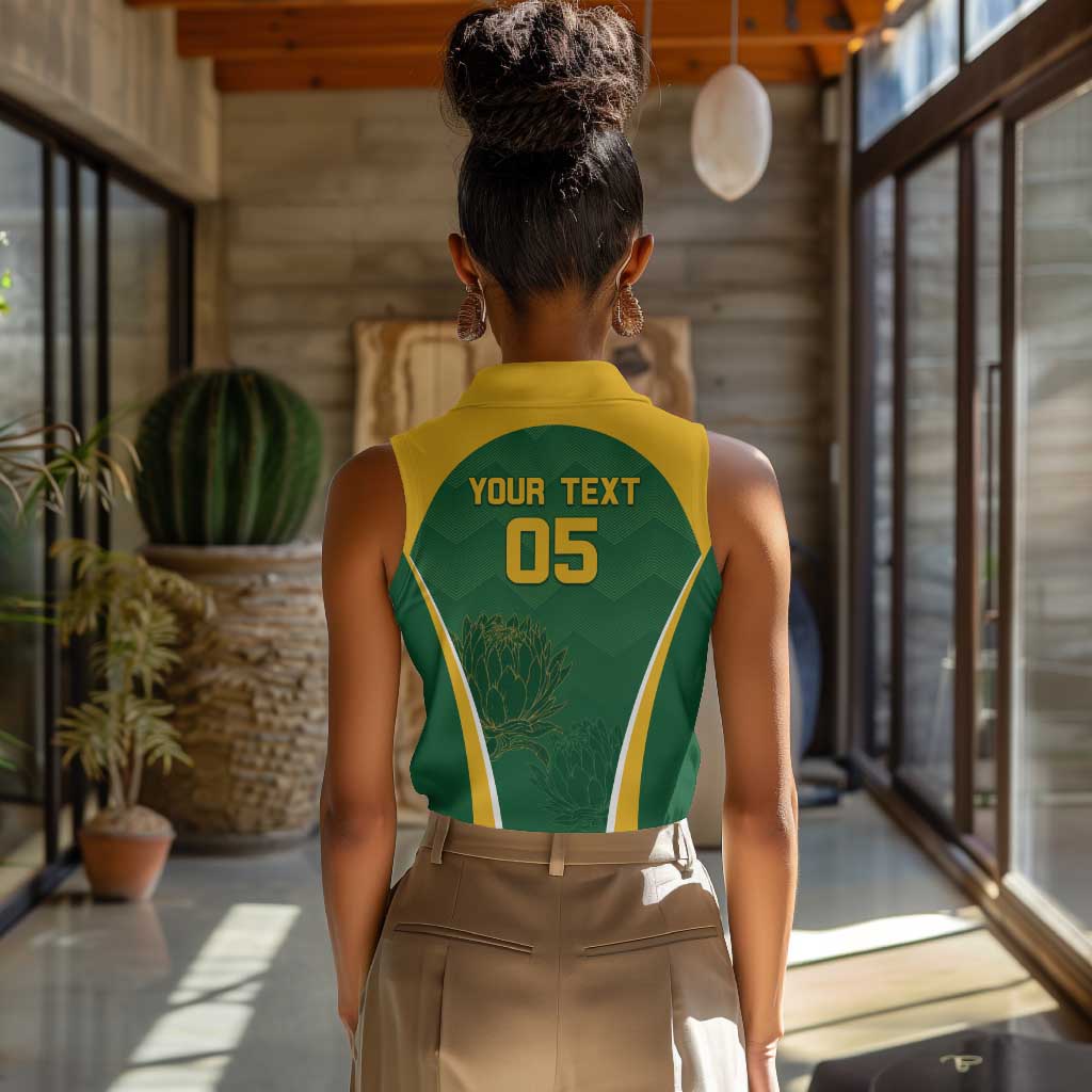 Custom South Africa Cricket Women Sleeveless Polo Shirt Go Champions Protea Pattern