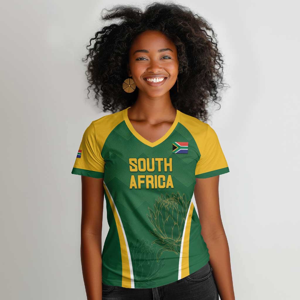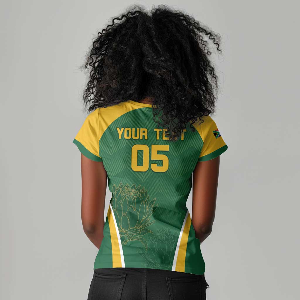 Custom South Africa Cricket Women V-Neck T-Shirt Go Champions Protea Pattern