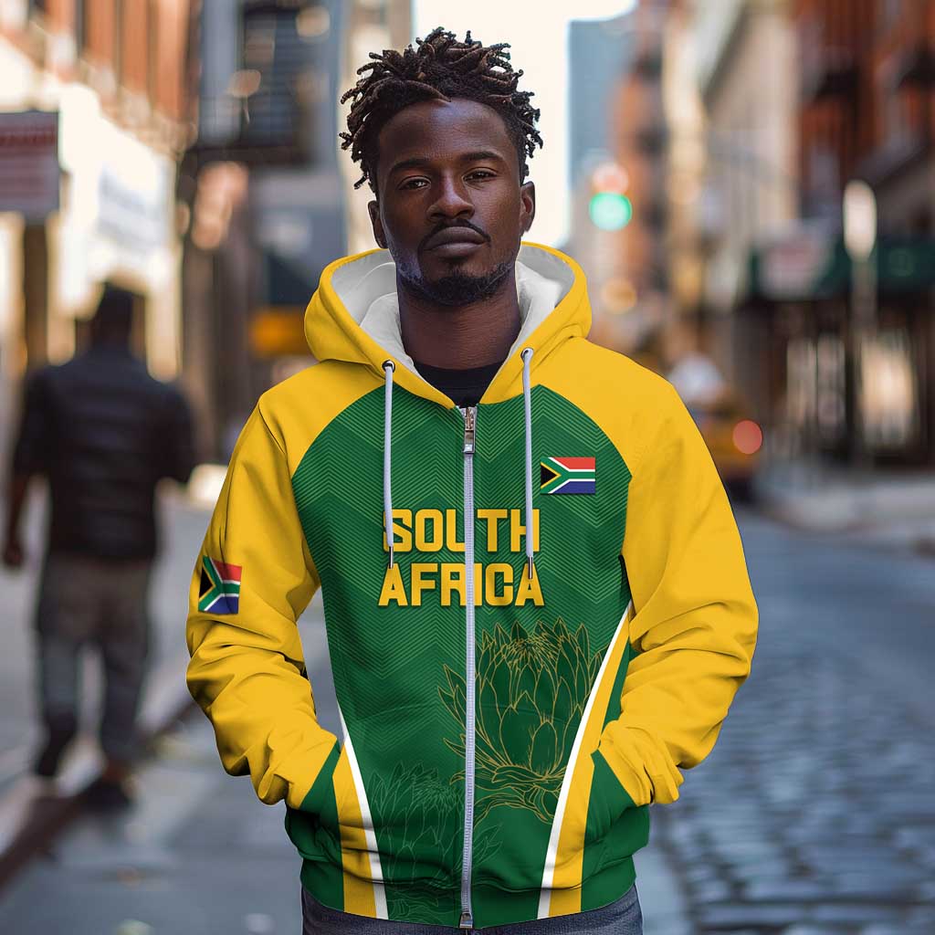 Custom South Africa Cricket Zip Hoodie Go Champions Protea Pattern