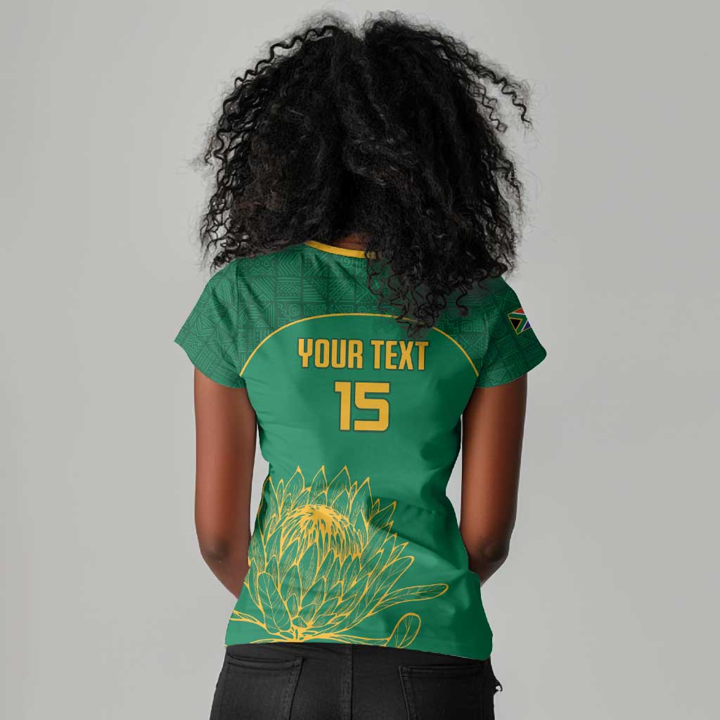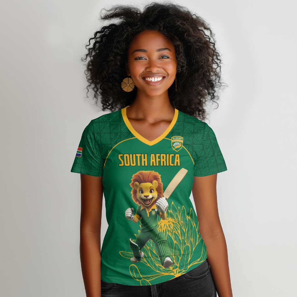 Custom South Africa Women V-Neck T-Shirt Lion Mascot Proteas Cricket
