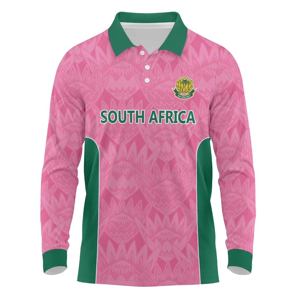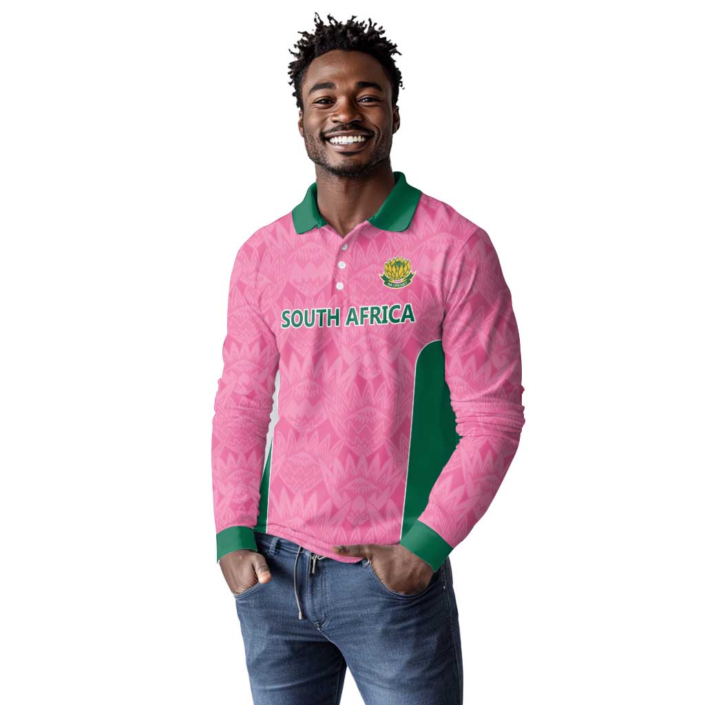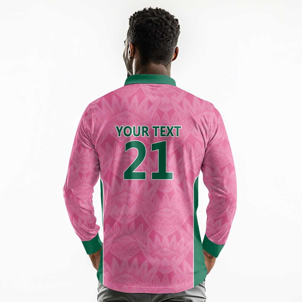 Pink South Africa Cricket Custom Long Sleeve Polo Shirt African King Proteas Be Way Pink