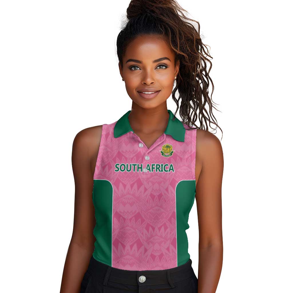 Pink South Africa Cricket Custom Women Sleeveless Polo Shirt African King Proteas Be Way Pink