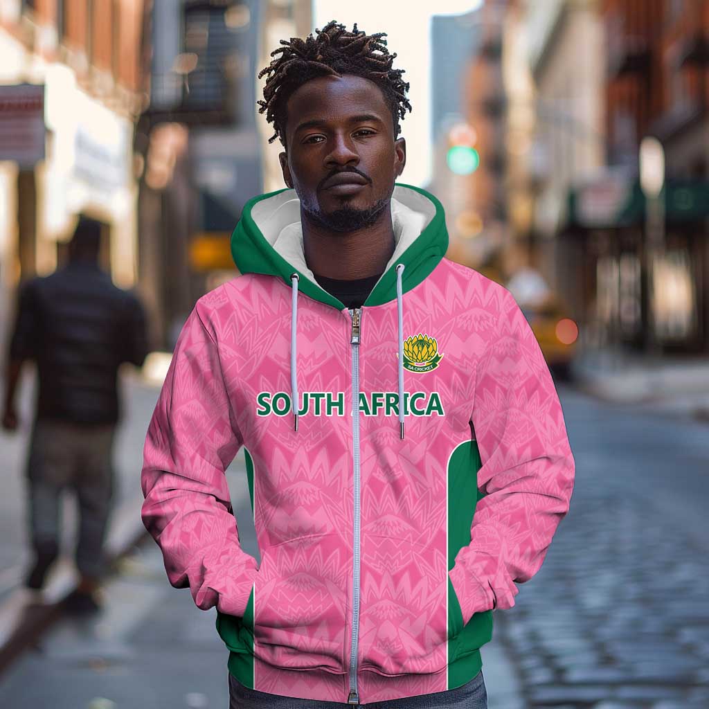 Pink South Africa Cricket Custom Zip Hoodie African King Proteas Be Way Pink